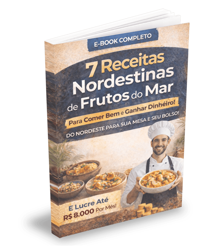 O e-book Frutos do Mar Nordestinos é um guia prático e direto que ensina 7 receitas tradicionais do Nordeste brasileiro à base de frutos do mar, com foco tanto no sabor autêntico quanto na oportunidade de gerar renda com a culinária.